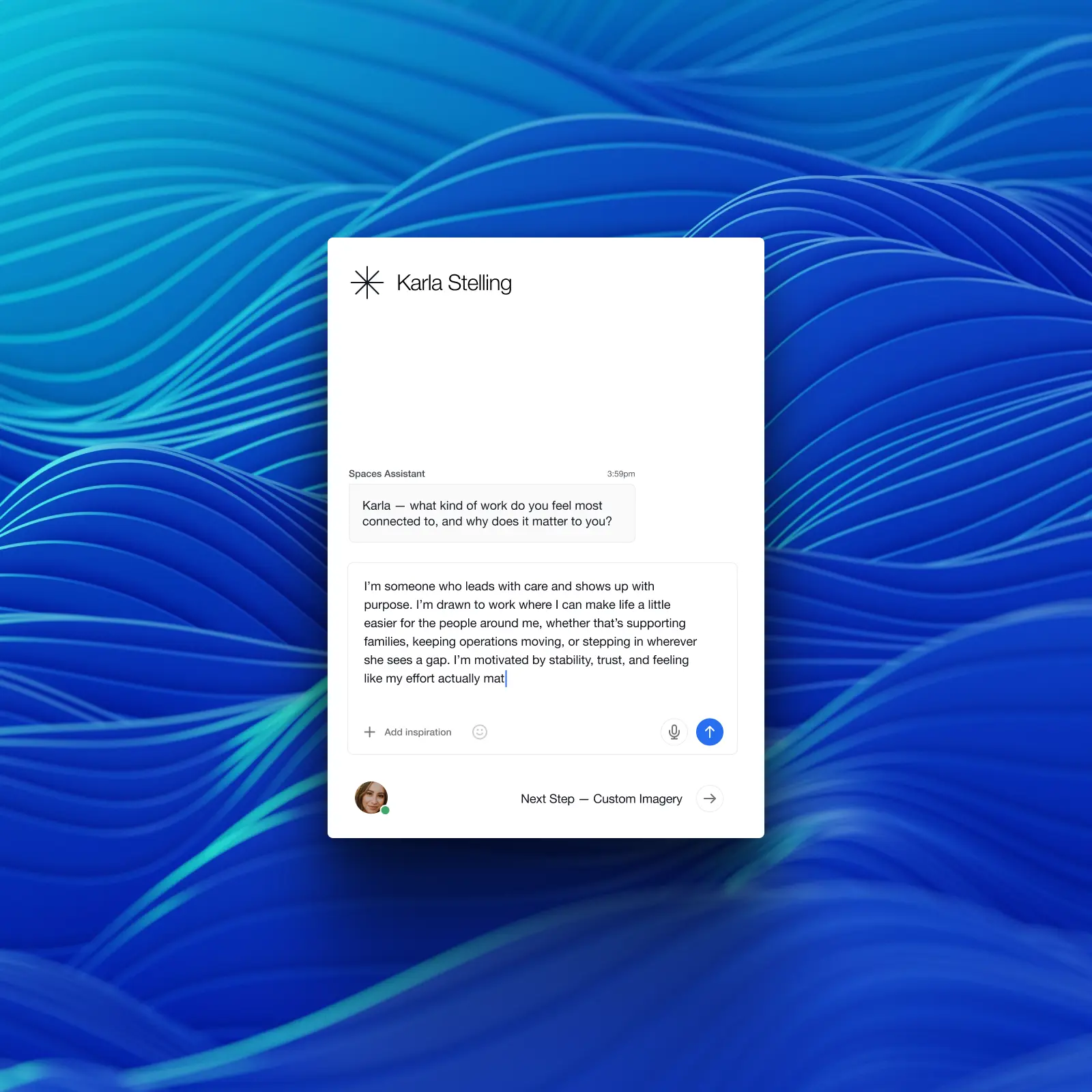 We focused on creating a clear, intentional path into community. As part of onboarding, an AI Assistant helps create a digital version of the person behind each space — welcoming visitors, setting context, and guiding them toward what success looks like there.
