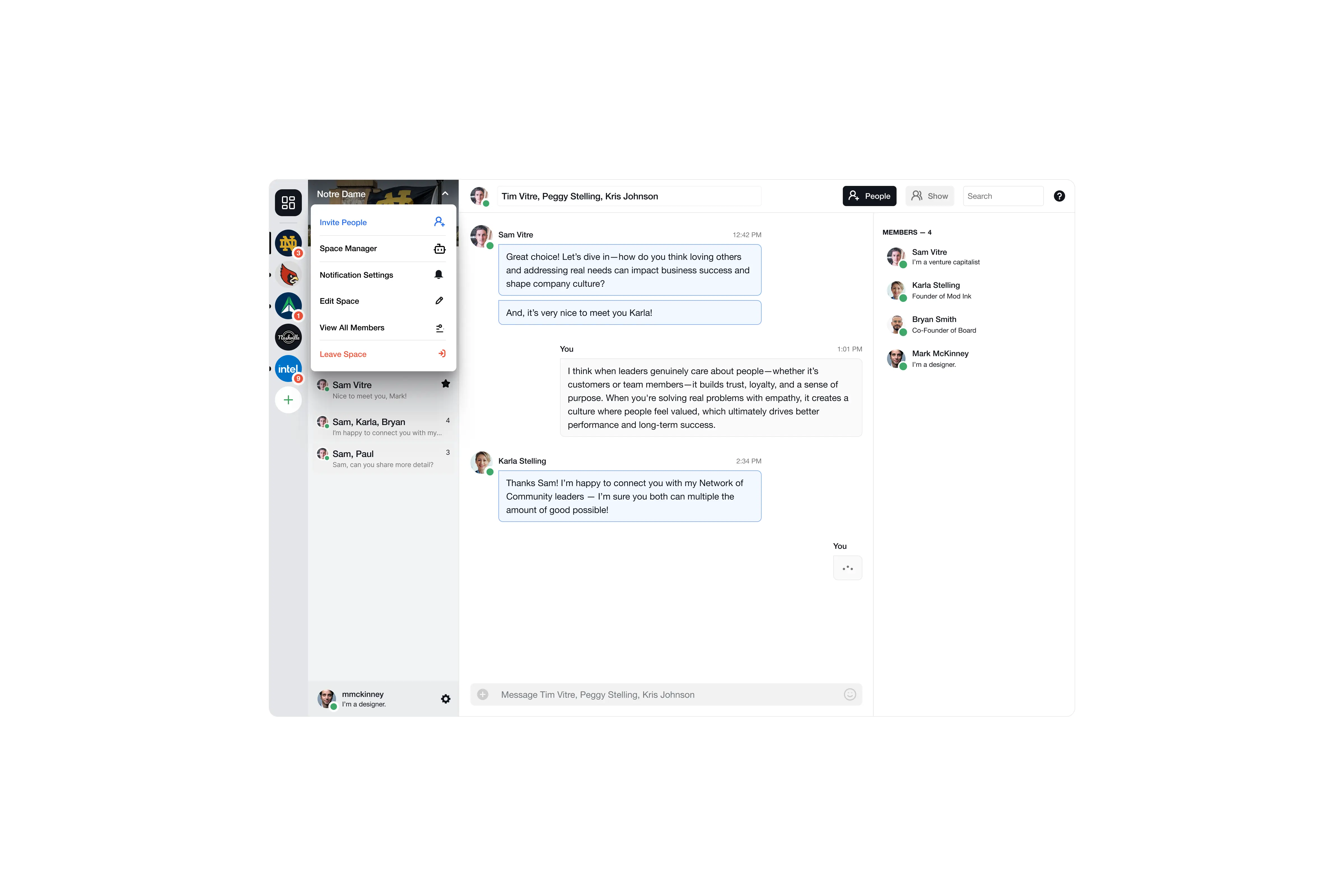 Each space is built around shared goals and values, with AI helping surface alignment between people and the communities where they’re most likely to feel at home and contribute. The goal isn’t automation for its own sake, but making it easier for people to find the right place and connect with purpose.
